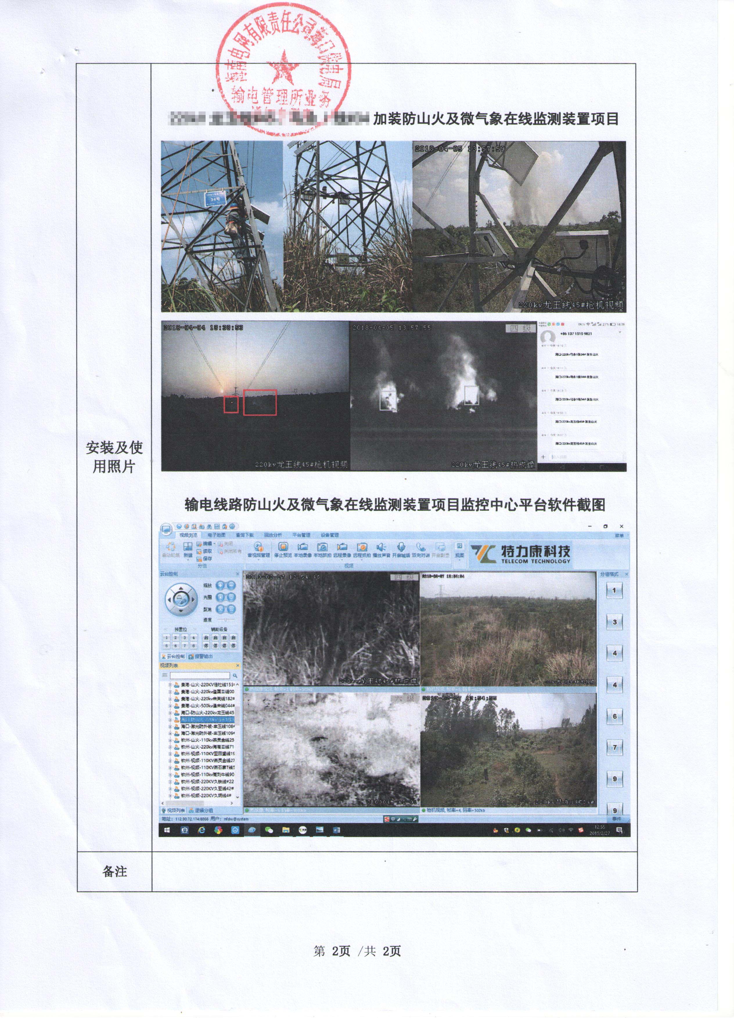 設(shè)備于2018年1月26日安裝并投入使用,使用至今,該設(shè)備及系統(tǒng)運(yùn)行穩(wěn)定,在使用過(guò)程中,設(shè)備能對(duì)輸電線(xiàn)路走廊山火及微氣象進(jìn)行監(jiān)測(cè),及時(shí)向維護(hù)人員發(fā)送報(bào)警信息,并聯(lián)動(dòng)錄像裝置,可以很好的監(jiān)測(cè)輸電線(xiàn)路山火及微氣象。