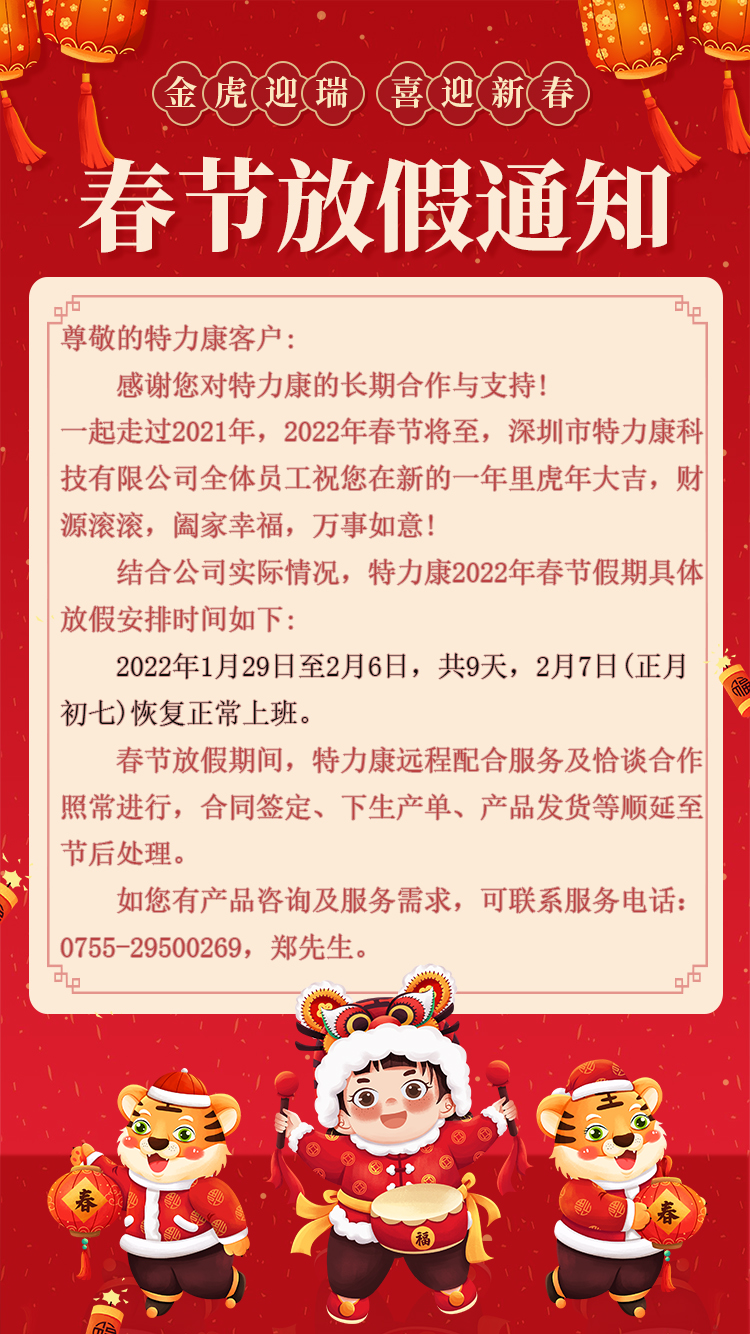 2022年春節(jié)即將來臨,根據(jù)國家相關規(guī)定,結合本公司實際情況,經(jīng)公司領導決定2022年春節(jié)假日具體放假安排時間如下:
