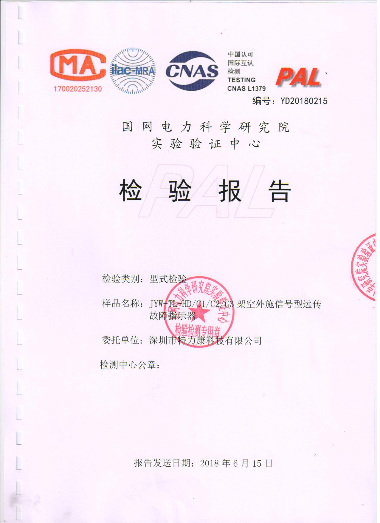 我司專注輸電線路在線監(jiān)測十二年,在智能電網(wǎng)監(jiān)測領域已有了不凡的地位。然而,為了更好的為電力智能化管理做出貢獻,我司大力組建研發(fā)團隊致力于配網(wǎng)故障監(jiān)測產(chǎn)品開發(fā),經(jīng)多年研發(fā)與掛網(wǎng)測試,于2018年1月20日,經(jīng)邀請,攜帶我司研發(fā)的架空暫態(tài)特征型、架空信號遠傳型故障指示器,前往國家電網(wǎng)電力科學研究院進行抽檢試驗及測試。在長達將近5個月的各項性能測試后,我司架空暫態(tài)特征型、架空信號遠傳型故障指示器的測試結(jié)果均達到合格。因此,于2018年6月15日國網(wǎng)電力科學研究院為我司發(fā)放了相關檢測報告證明文件(型式檢測報告)。