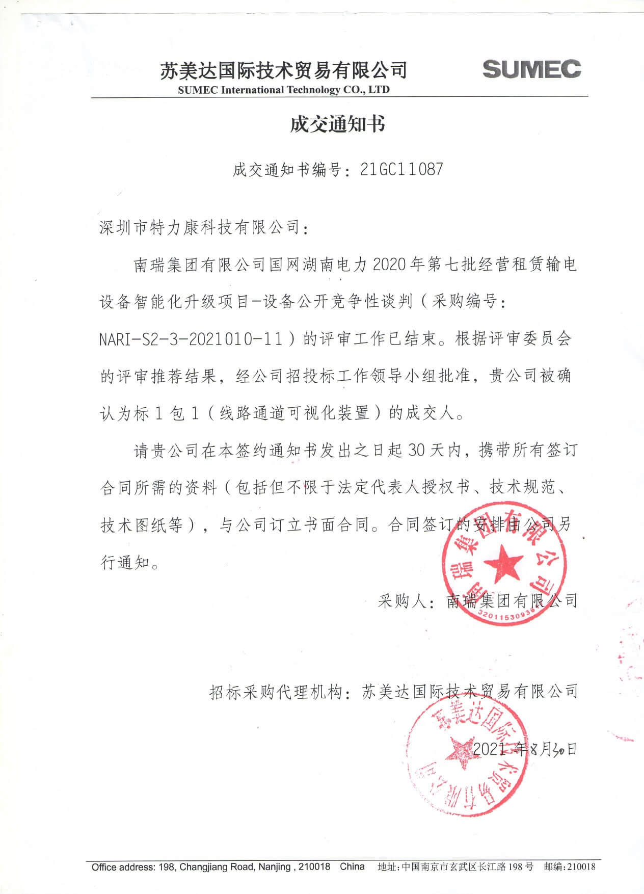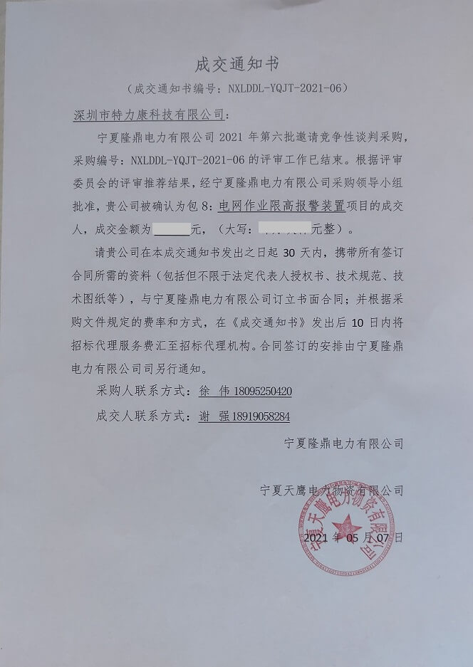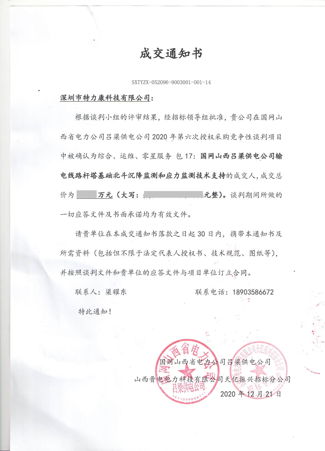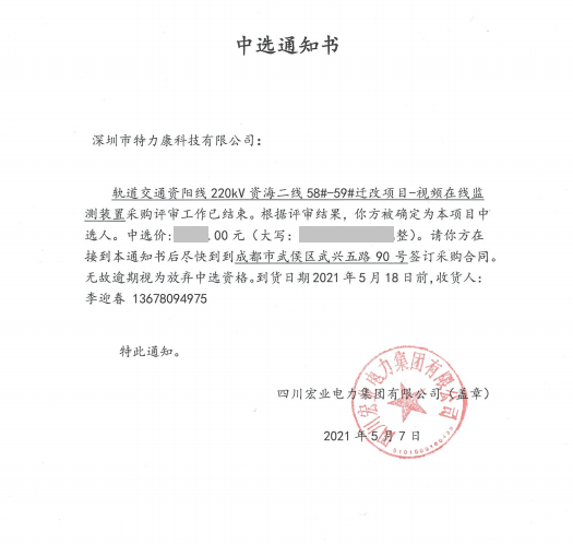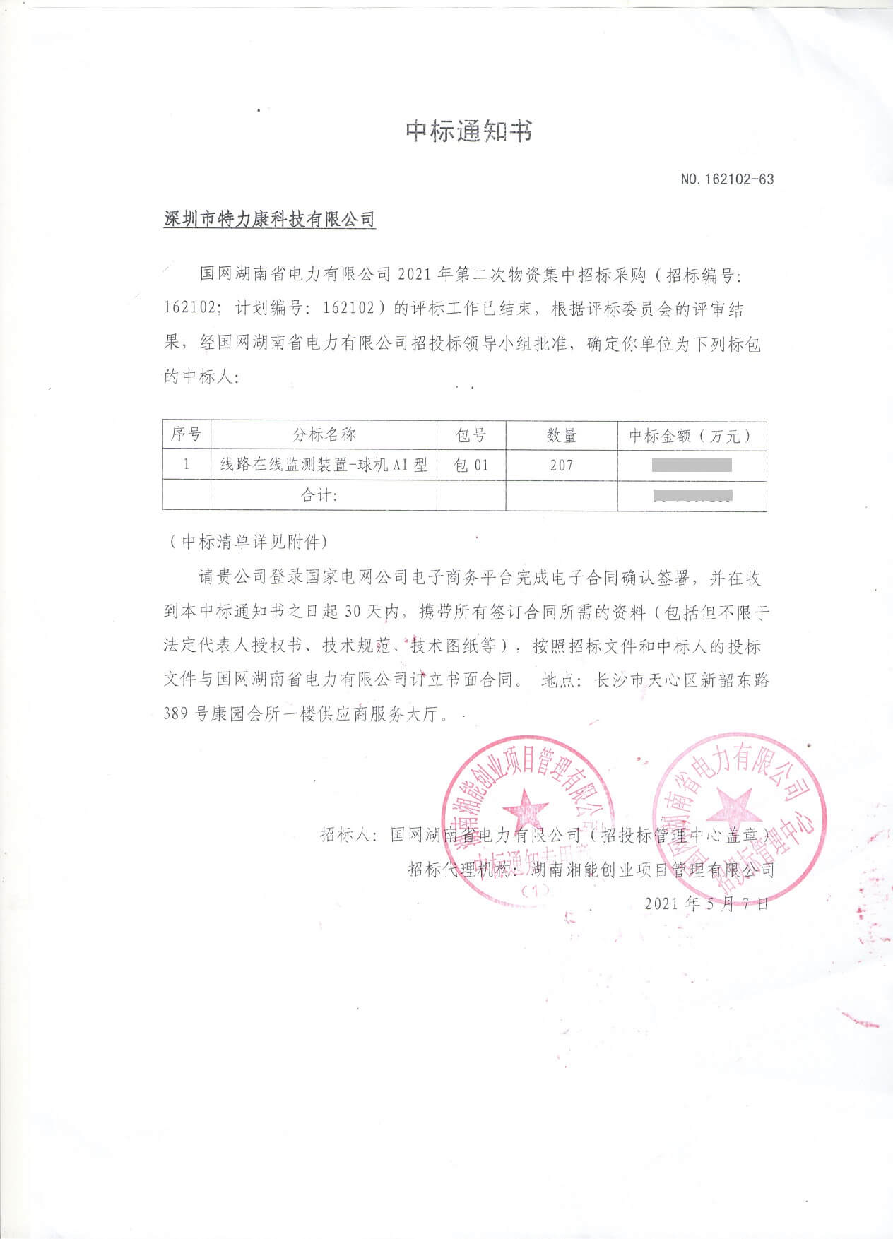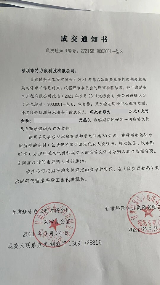 特力康中標(biāo)國網(wǎng)黑龍江送變電工程公司的2024年度第18次物資類競爭性談判采購項目——慶陽驅(qū)鳥器物資框 特力康中標(biāo)國網(wǎng)甘肅省電力公司省管產(chǎn)業(yè)單位2024年第五次物資競爭性談判授權(quán)采購項目 中標(biāo)喜訊:深圳市特力康科技有限公司成功入圍許繼集團(tuán)綜合能源公司輸電線路視頻在線監(jiān)測裝置模塊集采項目 中標(biāo)喜訊:特力康成功中標(biāo)國網(wǎng)重慶市電力公司渝中一片區(qū)項目 特力康成功中標(biāo)國網(wǎng)天津市電力公司2024年第二次?物?資招標(biāo)項目 特力康中標(biāo)國網(wǎng)安徽省電力有限公司蕪湖供電公司2024年3月非物質(zhì)采購項目 破解巡檢難題:貴州電力用特力康 AI 微拍裝置,精準(zhǔn)捕捉線路隱性隱患 精準(zhǔn)捕捉 “微氣象”:浙江電力用特力康預(yù)警系統(tǒng)筑牢電網(wǎng)氣候防線 守護(hù) “電力咽喉”:湖南電力投用百套特力康三跨 4G 監(jiān)控球,筑牢安全防線 貴州電力裝特力康電網(wǎng)架空線路覆冰監(jiān)測系統(tǒng),精準(zhǔn)防冰保電網(wǎng)過冬? 百套落地山西電網(wǎng)!特力康輕量化輸電架空線路監(jiān)拍裝置,筑牢輸電安全網(wǎng) 破解采空區(qū)隱患:山西電力裝特力康通用型監(jiān)測裝置,守鐵塔穩(wěn)運行 四川電力用特力康架空輸電線路山火監(jiān)測裝置,筑牢林區(qū)輸電 “防火墻”? 寧夏配電線路安裝了我司防外破電子化智能警示牌